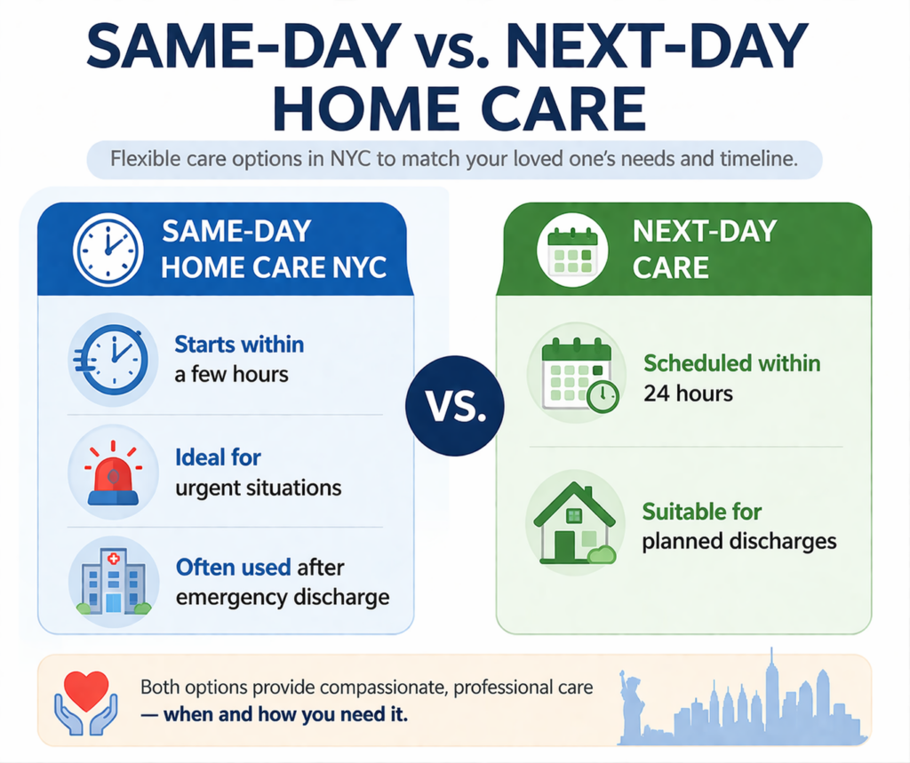 Families seeking after-surgery home care in NYC often prefer same-day services for immediate support.